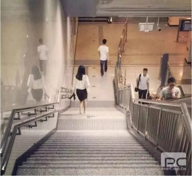 就像這個(gè)加班到很晚的姑娘,腳太累了,提著高跟鞋光腳走下樓梯,去趕最后一班地鐵。